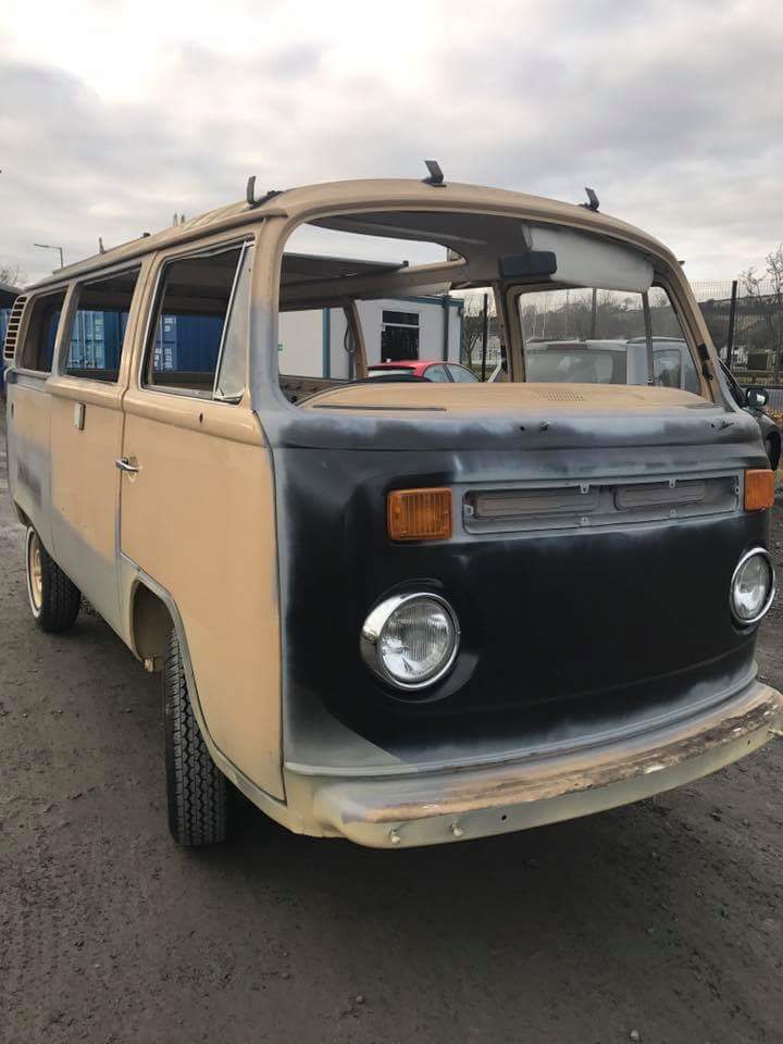 Below is a classic VW Camper showing removal of old rusted bodywork, replacement panels welded in place, bespoke fabricated replacement parts and a respray.